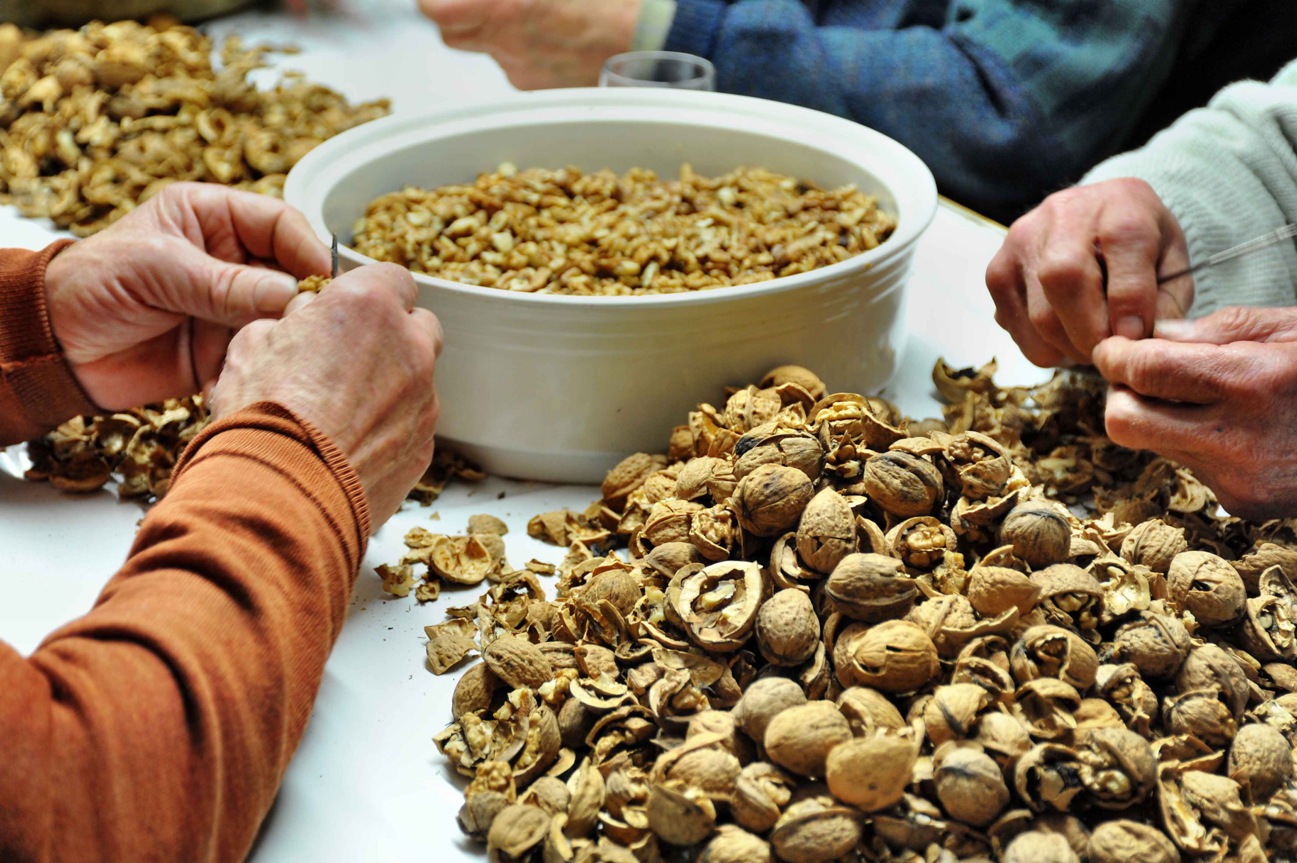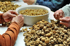 Jockenhof zusammen um gemeinsam Nüsse zu knacken. Die handverlesenen Kerne werden