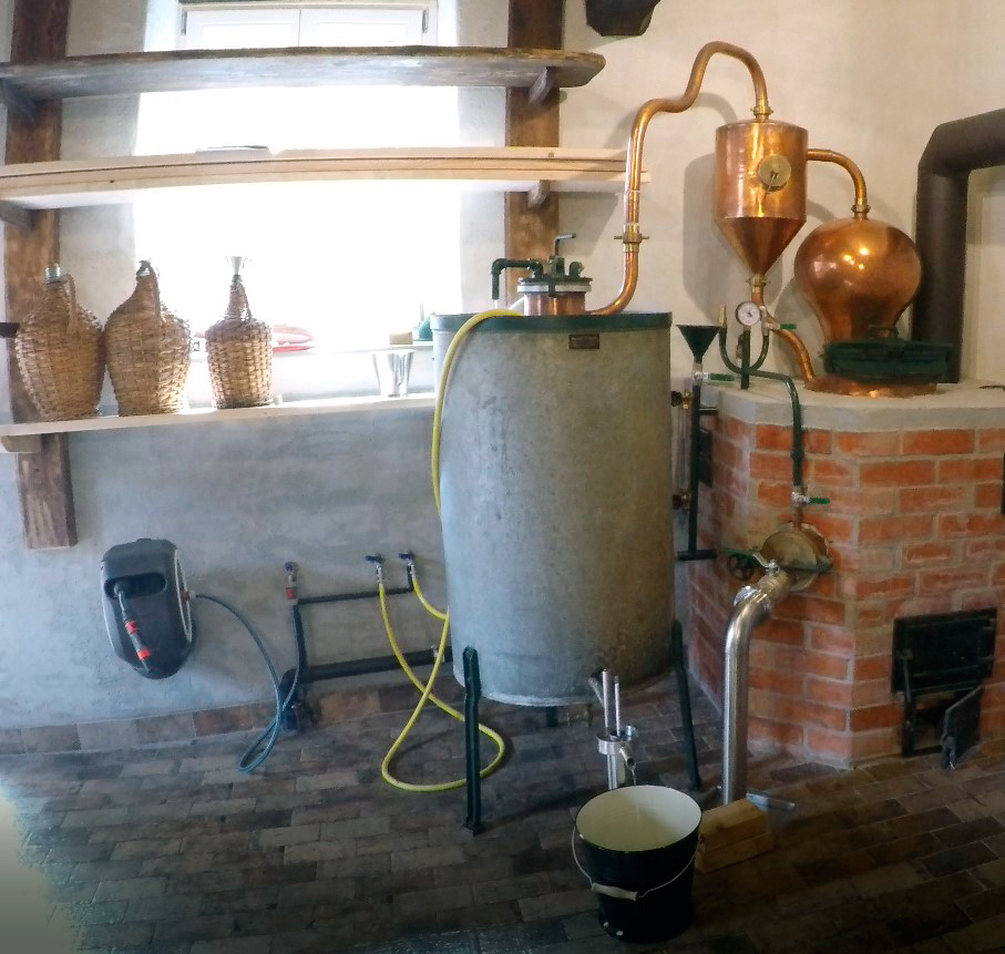 In dem restaurierten Backhaus ist eine Schnapsbrennerei integriert. Mit der Übernahme des